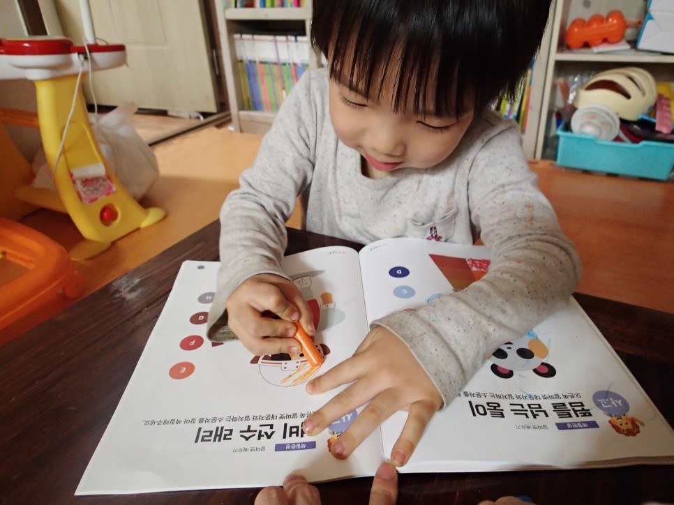 인이는 한글, 영어, 숫자 중에 영어를 선택했어요~^^ 차례차례하는것도 좋치만 처음 보는 스타일의 색칠놀이라서~^^ 흥미를 주기위해 원하는거 먼저 선택하게 해줬어요~^^ 아이들은 본인이 하고 싶으면 끝까지 하려고 하자나요~^^