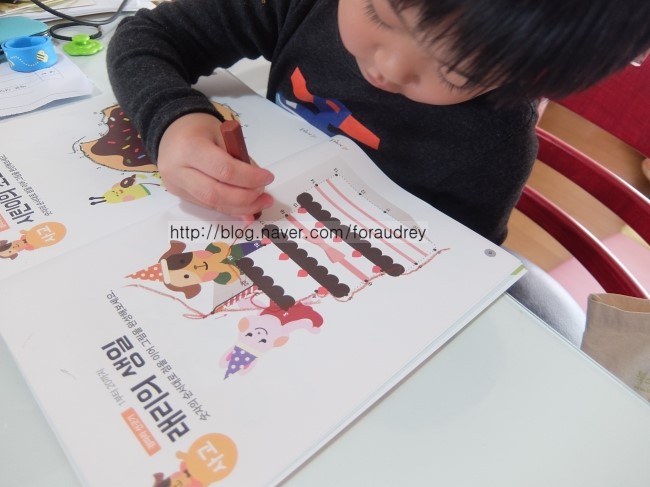 그래서 가위로 자르고 붙이거나, 직선을 긋는걸 참 좋아하는데요~